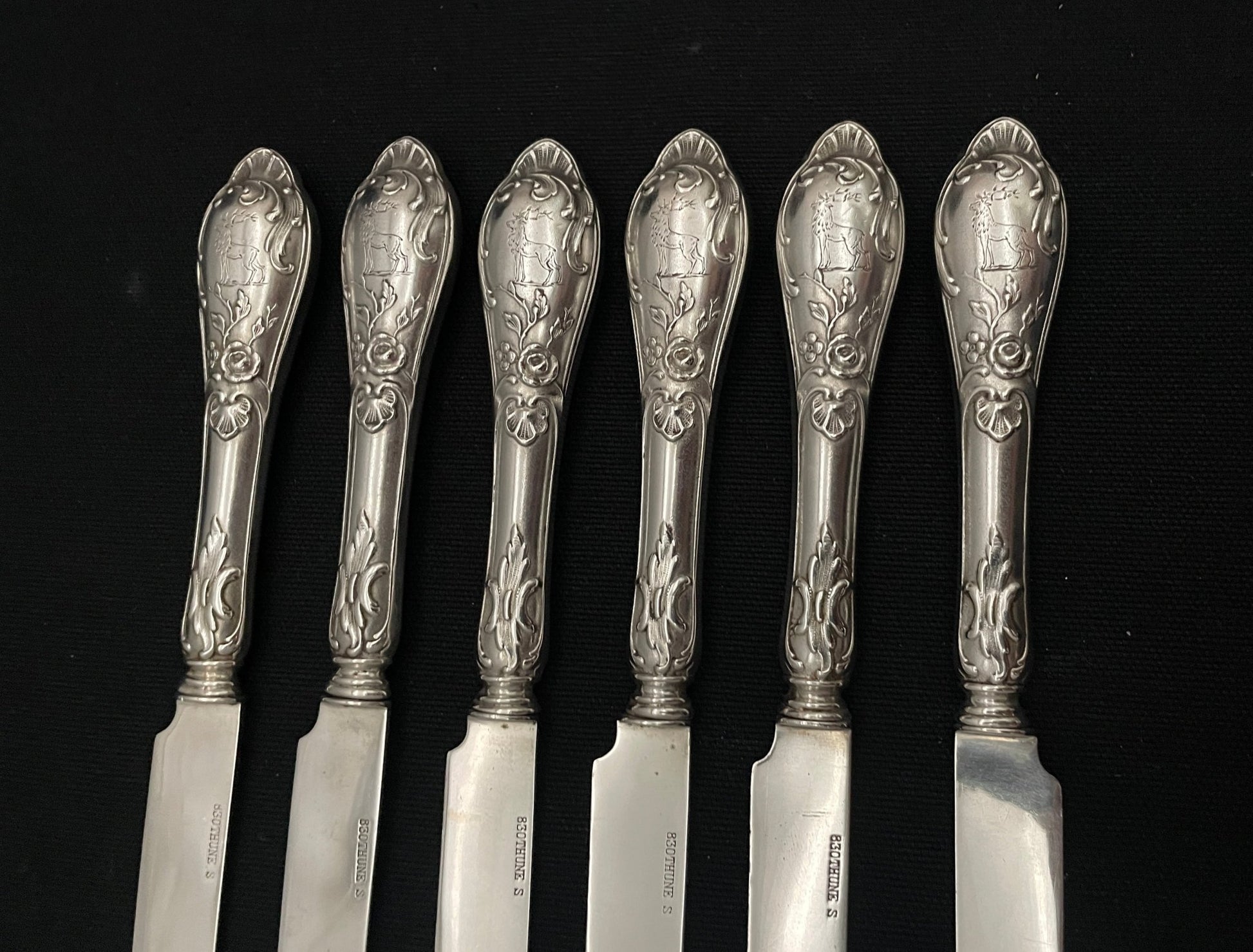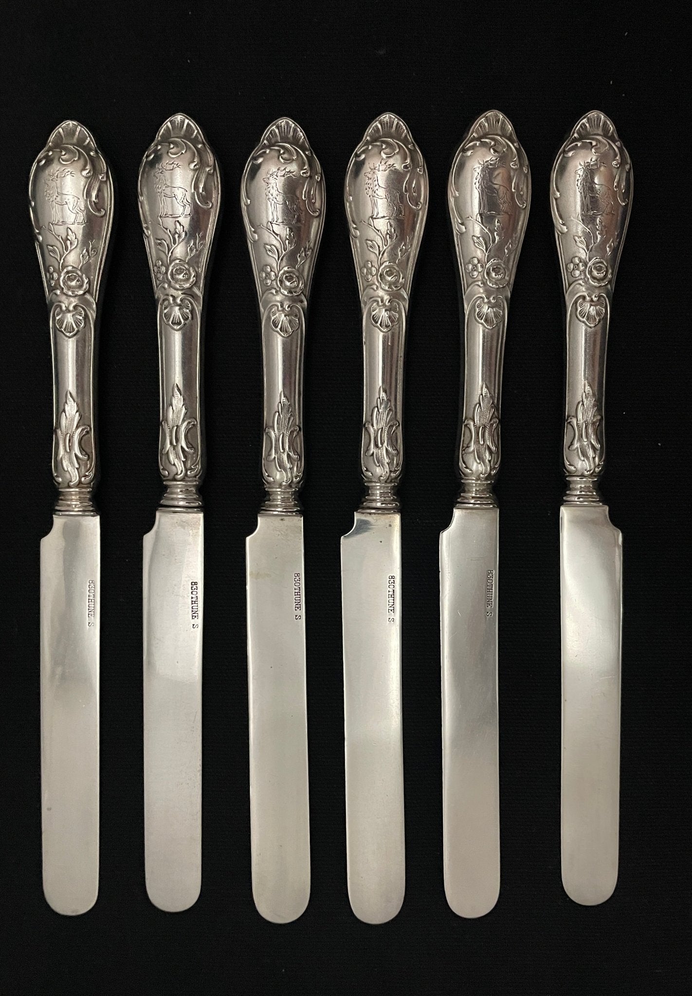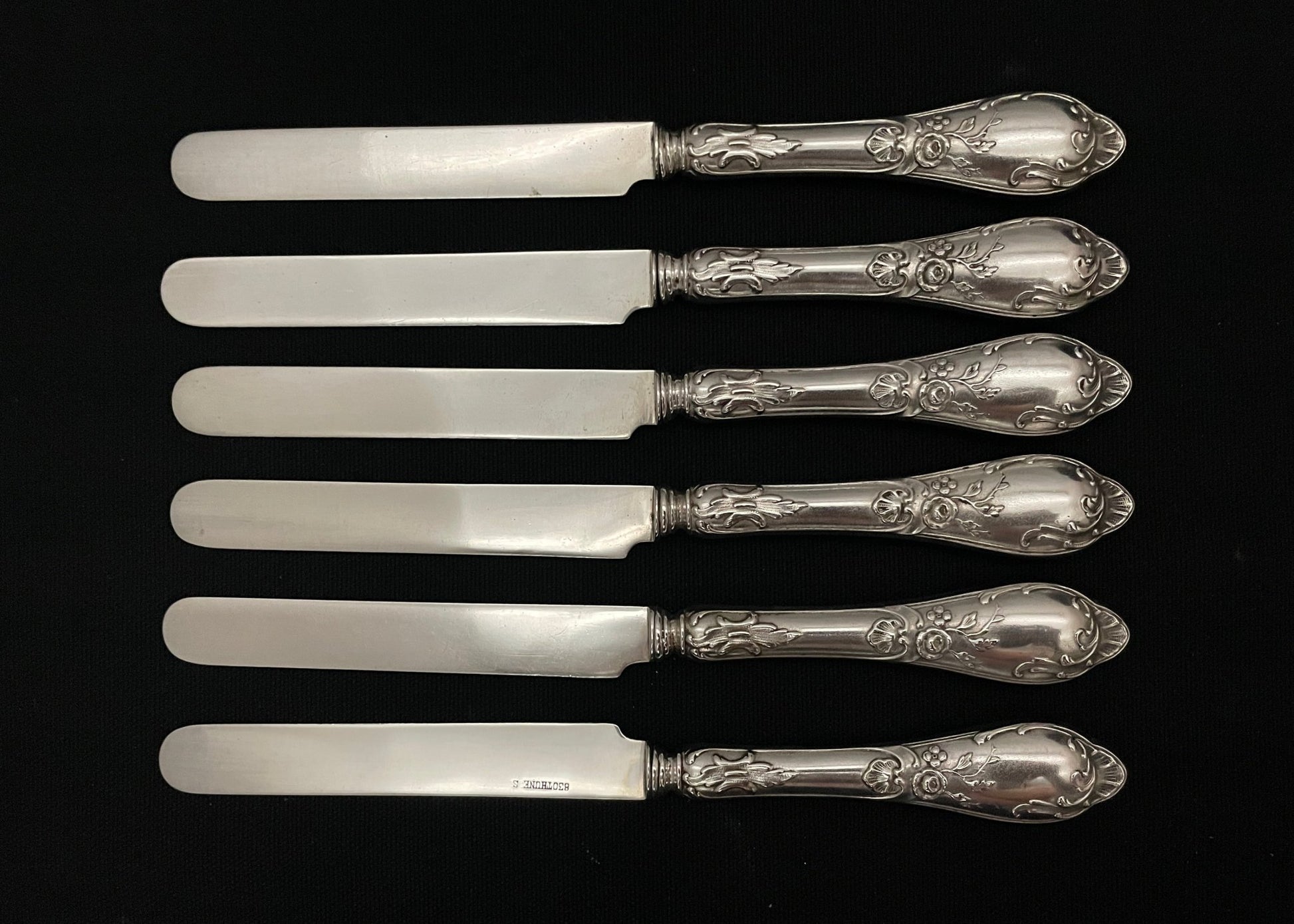 Rococco sølvbestikk kniver i 830s helsølv av Thune