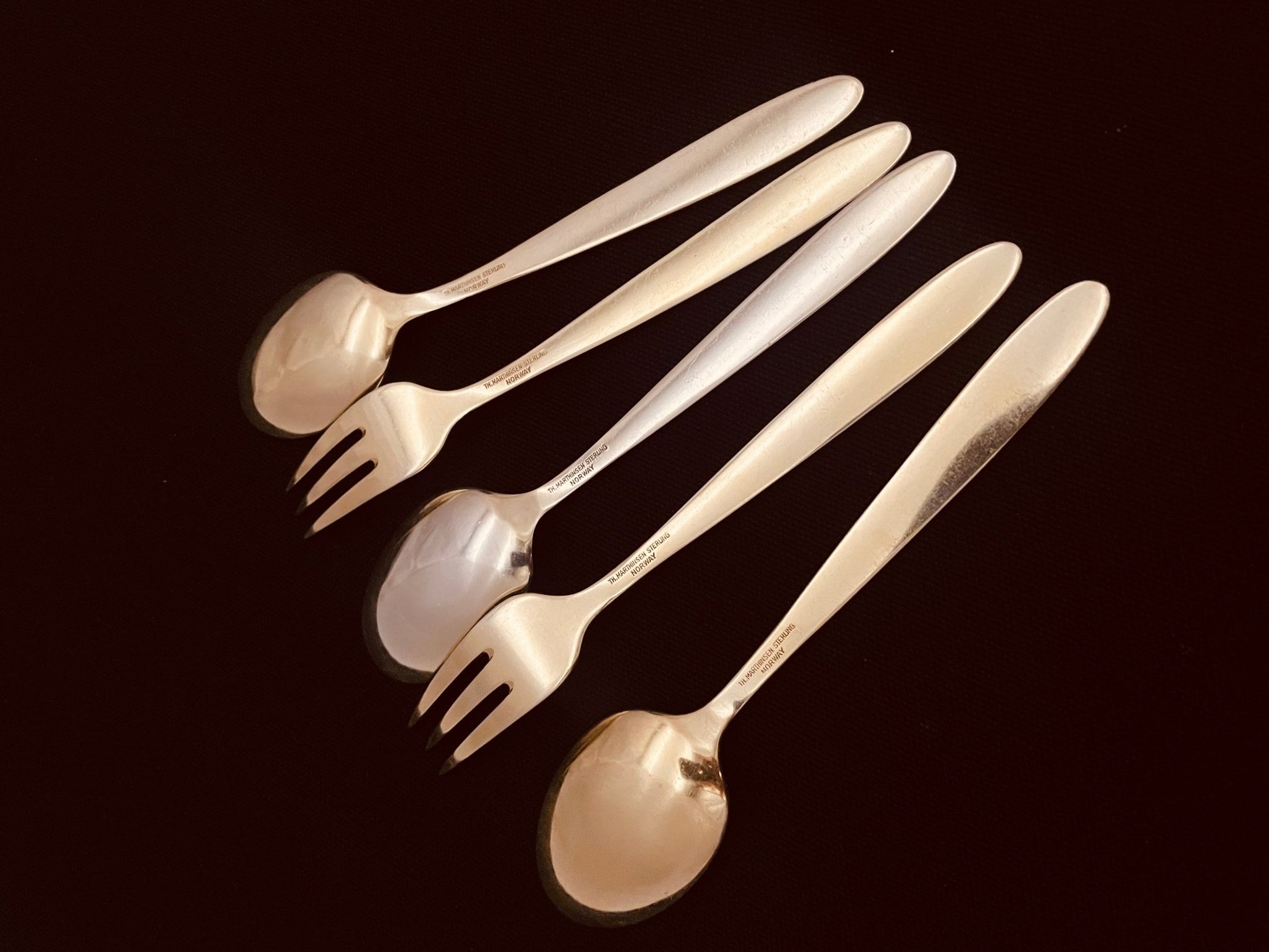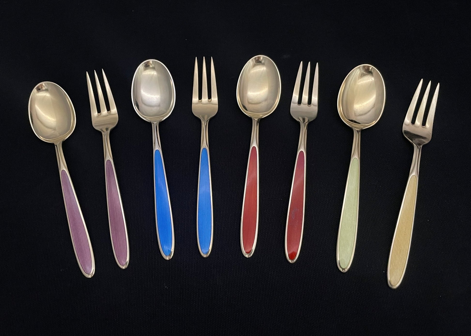 Emalje sølvbestikk kake gaffel eller dessert skje i 925s av Th Marthinsen